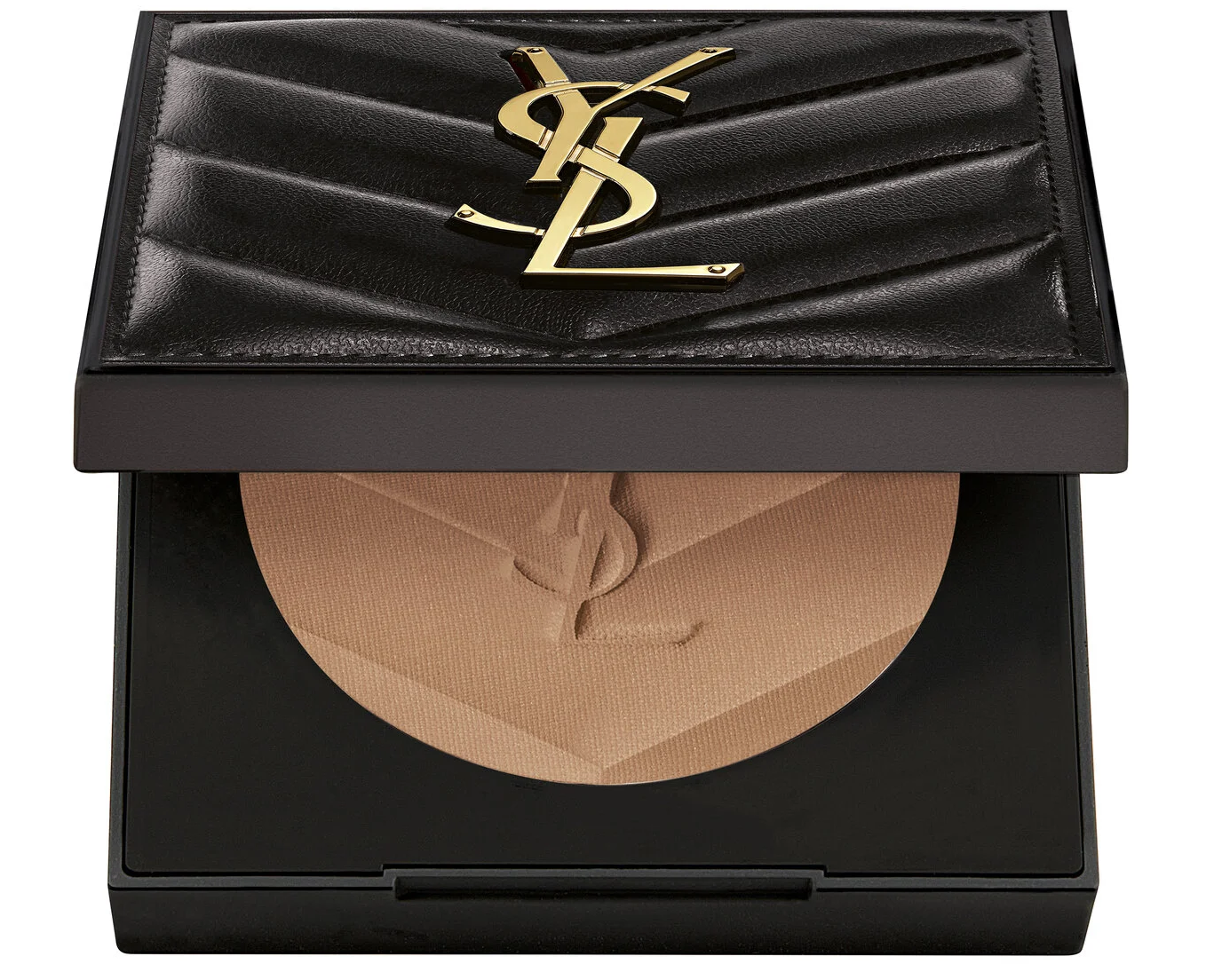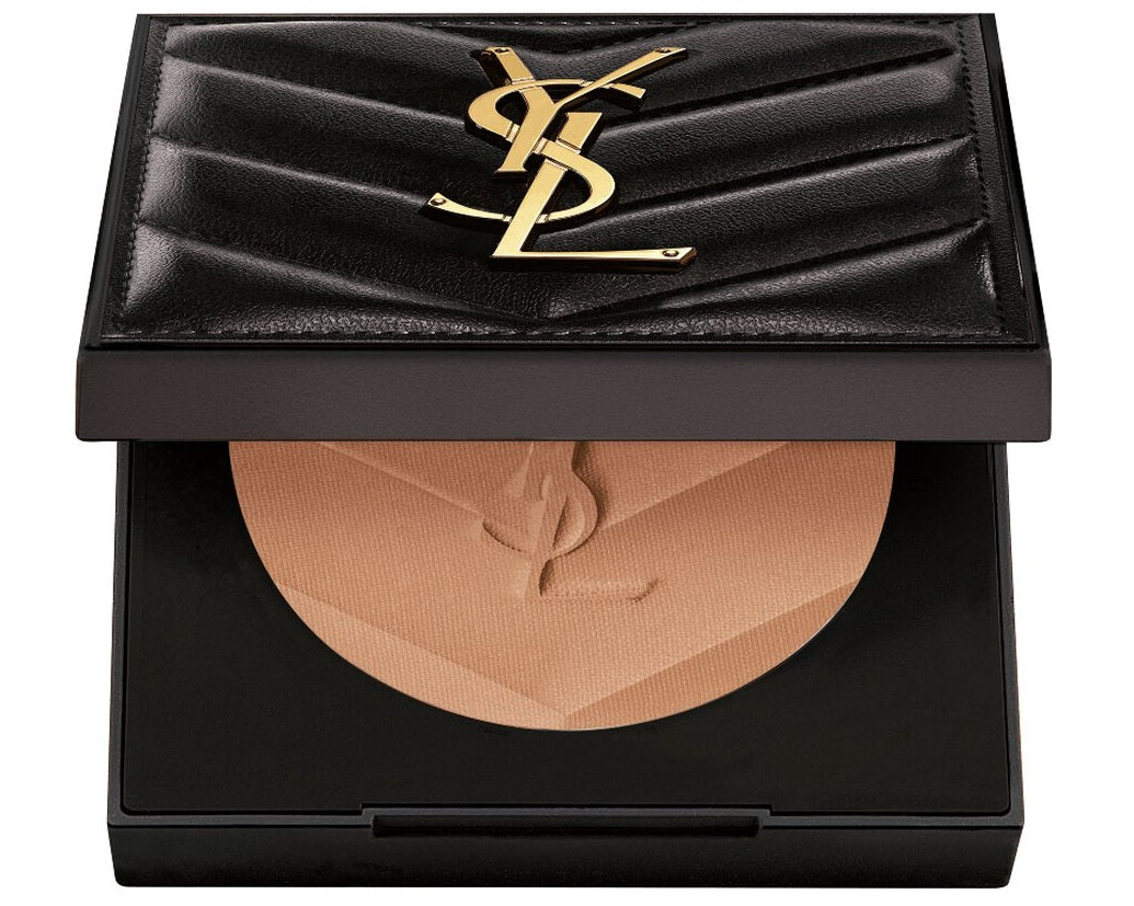 A finishing powder in a YSL couture clutch. This 24H non-comedogenic and multi-use soft-matte powder sweeps shine, sets foundation, blurs imperfections, and resists sweat.