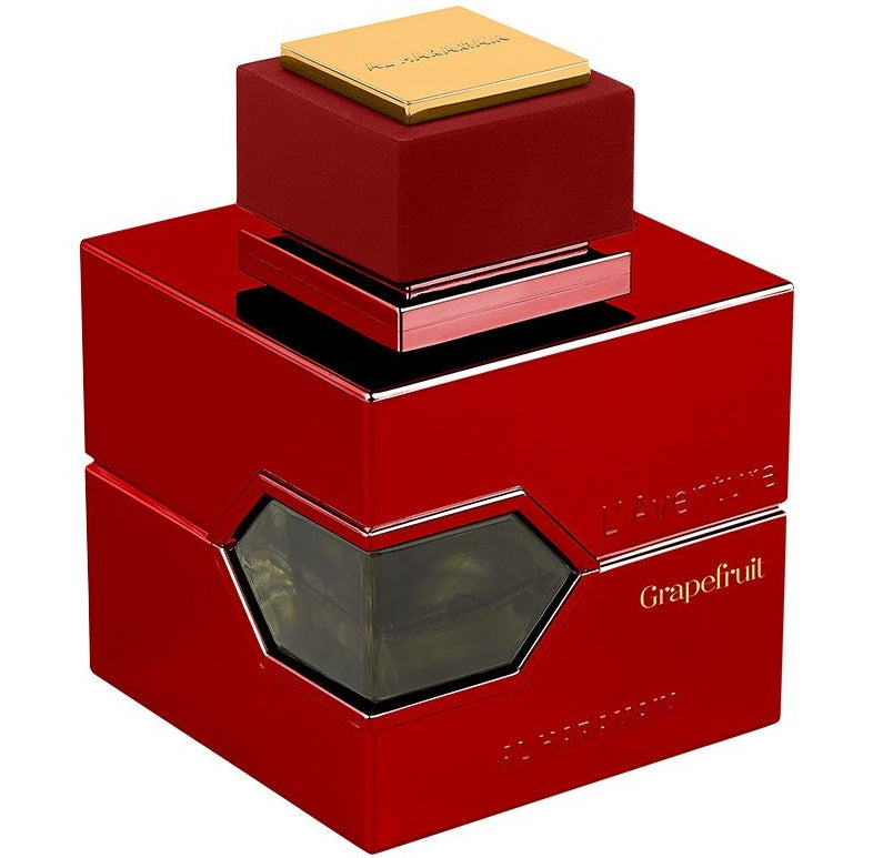 Haramain L'Aventure Grapefruit is your passport to a world of unmatched charm, a fragrant masterpiece that weaves the vibrancy of sun-kissed grapefruits into an aromatic masterpiece. The initial burst is a juicy symphony of grapefruit with red berries. black currant, and litchi, an exhilarating dance on your skin that captivates the senses. It is a journey of elegance as Melon. Almond Blossom. Iris. Freesia. Magnolia. Jasmine. Rose. and Lily of the Valley join the celebration. it is adding a touch of sophistication. But it doesn't stop there the lingering base notes of caramel. vanilla. patchouli, benzoin. sandalwood. musk and vetiver under- tones ensure that this enchantment endures. it is creating an aura of irresistible charm throughout the day. Embrace the extraordinary, let each note be a celebration. and make every moment an adventure in elegance and spirit.